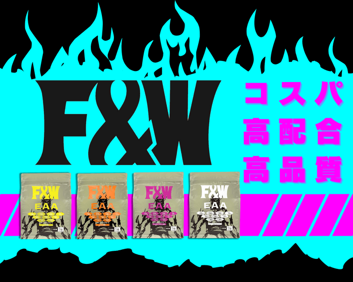 F&WはプロテインやBCAA、EAAを毎日摂りたいけれど、費用が嵩み、続けにくいと悩んでいる方に向けて、原材料調達を含め自社で開発することによって原料の選定から配合までこだわった商品づくりを行っています。