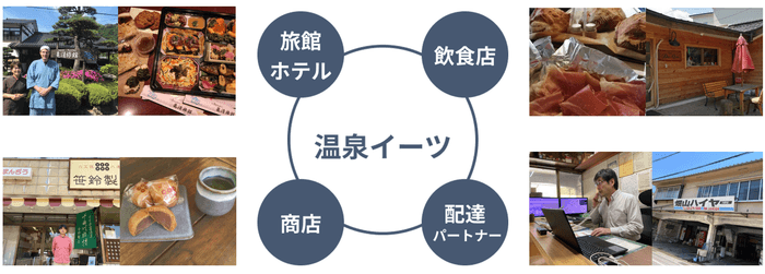 観光産業がストップしている現在、信州随一の温泉街である千曲市の戸倉上山田温泉街を中心に、人を動かすのではなく、美味しい温泉街グルメを中心とした「モノを動かす」ことにシフトしたサービス「温泉イーツ」を始めます。「行楽を届ける」をコンセプトで、旅館、飲食店、食品店、そして地元タクシーを含む配達パートナーがタッグを組み、店を超えてまとめて注文を取り・配達(まとめてテイクアウトをあり)を協業する新しい仕組みです。