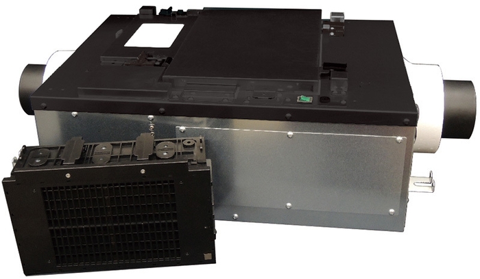 「トルネックス外気清浄機」に搭載されている「電子式集塵フィルタ」は、PM2.5よりさらに小さなタバコの粉塵(0.5μm以下)をも集塵することが可能、湿度や温度環境に合わせ最適な運転を行うことで、集塵性能を長期間維持できます。当電子式集塵フィルタは、高い集塵性能を持ちながらも、一般的な微小粒子フィルタと異なり、フィルタが目詰まりしないため、換気風量は低下しません。