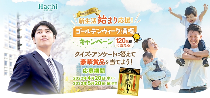 ハチ食品株式会社(大阪府大阪市、代表取締役社長:高橋 慎一、以下 ハチ食品)は、新商品発売を記念して、レトルト専用調理器「レトルト亭」やハチ食品新商品セット、QUOカードが抽選で当たる「新生活始まり応援&ゴールデンウィーク満喫キャンペーン」を2022年4月20日(水)から5月20日(金)まで、開催します。
