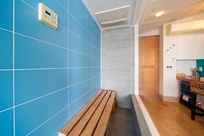 オーシャンビューのバスルームにはジェットバスとミストサウナをご用意。一棟貸別荘のプライべート空間なので親しい人間同士だけでサウナを楽しんだり、独り占めで自分好みの温度を設定するなど、最大限リラックスして“整う”サウナ体験がお楽しみいただけます。
