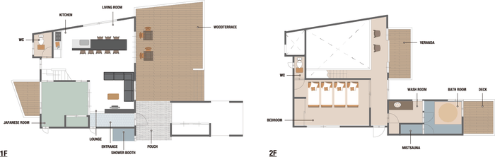 寝室は1F に和室(布団×4)と2F に洋室(シングルベッド×4)をご用意。※最大8 名様まで利用可
