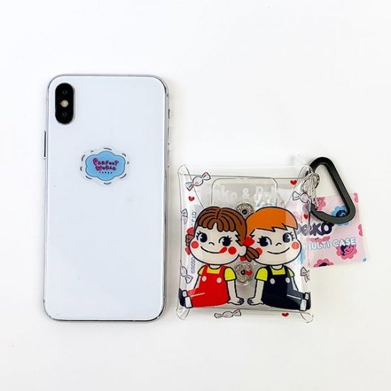 クリアマルチケースいっぱいに描かれたペコちゃんとポコちゃん。仲良くお座りしているとってもキュートなマルチケースです♪