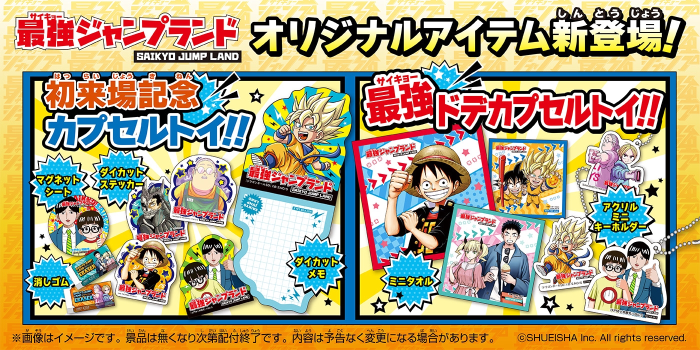 初来場時に回すことができる「初来場記念カプセルトイ」および、会場内で遊んで“最強ジャンプランドパスポート”のお宝スタンプを3つ集めて回せる「最強ドデカプセルトイ」に最強ジャンプランドのオリジナルアイテムが新登場!