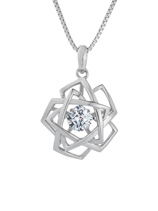 中央にはダンシングストーンを、そして下に1粒のクロスフォーカット(※)のキュービックジルコニアを留めた2連のペンダントです。