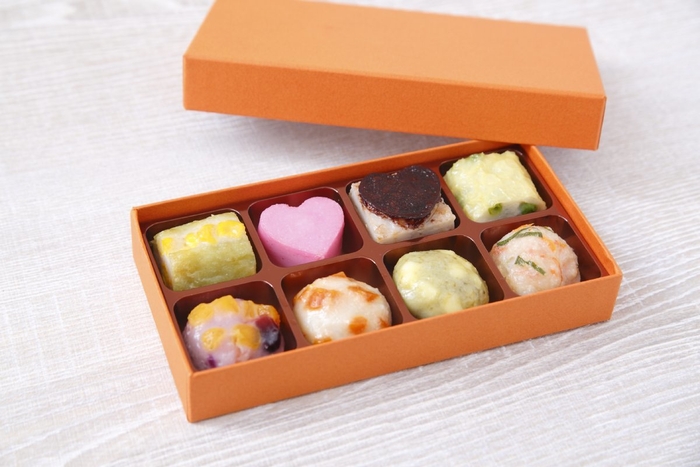 「バレンタインさつま揚げ」は、様々な具材を使った一口サイズのさつま揚げを、チョコレートアソートのように詰め合わせたバレンタイン限定のギフトセットです。