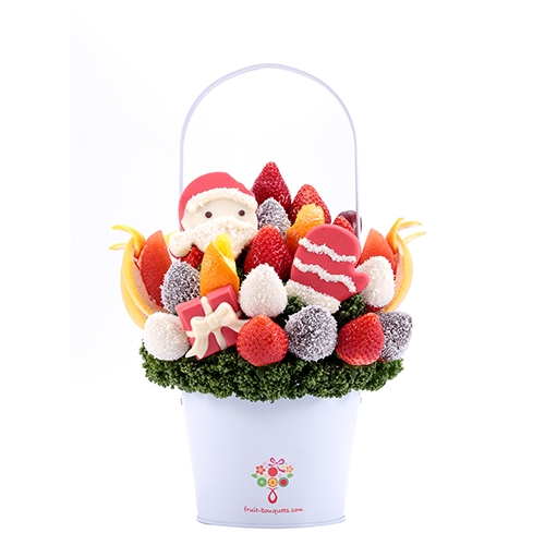 2021年のクリスマス新商品は、フレッシュな国産イチゴとキュートなサンタクロースのチョコレートをアレンジメントしたフルーツブーケです。