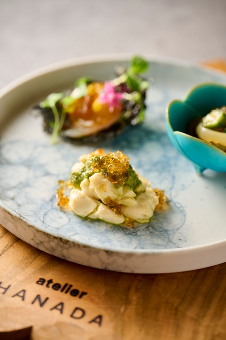 プレスキルは、王道フレンチを軸に、旬の食材であり一般家庭ではなかなか手に入らない高級きのこ「モリーユ茸」を使用した一品(前菜)や、佐々木康二シェフの修行仲間である、フランスのミシュラン獲得店シェフから譲り受けた特製レシピのマドレーヌ(小菓子)が登場します。特製レシピは、友人が約1万4500キロを245日かけて自転車で運んだ思い入れのあるもので、今回特別にメニューに取り入れました。アトリエハナダは、イノベーティブな中国料理を得意とした発想で、中国にしかない発酵レモンを使用し食感や風味を楽しむ「活あわびの発酵レモン炒め」(魚料理)や、烏龍茶葉を使ったブリュレにチベット胎菊(たいぎく)、スパイスを活かしたゼリーを合わせた「烏龍茶ブリュレ」(デザート)を提供します。