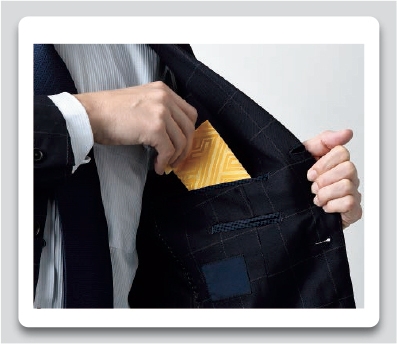 名刺大のどこでも隠せるサイズ。和装でも邪魔にならない薄さで、スーツのポケットにも携帯可能。消臭バリアで嫌な臭いから守ります。ポケットに入れたままクローゼットのリフレッシュにも。