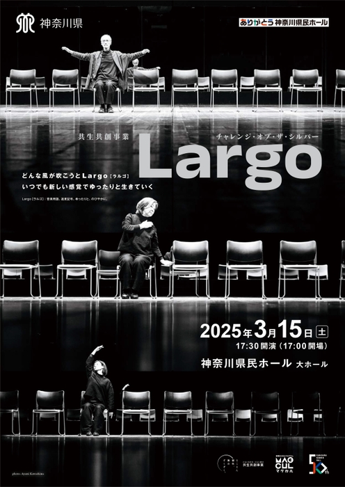 3月をもって休館する神奈川県民ホールに感謝を込め、「ありがとう神奈川県民ホール」イベントの一環として 共生共創事業 チャレンジ・オブ・ザ・シルバー『Largo』が2025年3月15日(土) に神奈川県民ホール(神奈川県横浜市中区山下町3-1)にて上演されます。 チケットはカンフェティ(運営:ロングランプランニング株式会社、東京都新宿区、代表取締役:榑松 大剛)にて1月18日(土)10:00一般発売開始です。