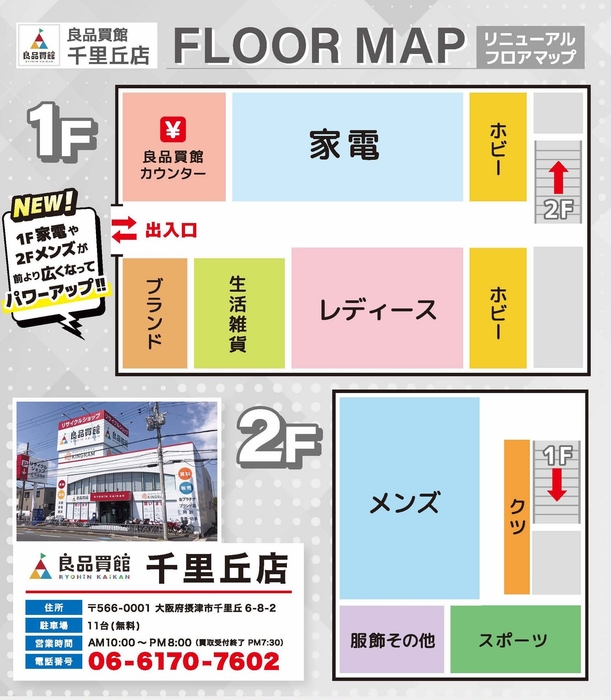 株式会社買取王国(本社:愛知県名古屋市、代表取締役会長:長谷川和夫、代表取締役社長:嶋本匡能、以下買取王国)は、東海地方を中心にリユースショップの店舗展開を行っています。大阪・奈良・兵庫を中心に店舗展開している大型総合リサイクル/リユースショップの「良品買館」も運営しております。このたび、2025年6月27日(金)に「良品買館千里丘店」がリニューアルオープンいたします。