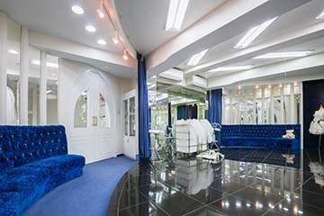 ゴーウエディングより、徒歩2分にある、自社ビル設備です。関西随一の広さと品揃えを誇っています。