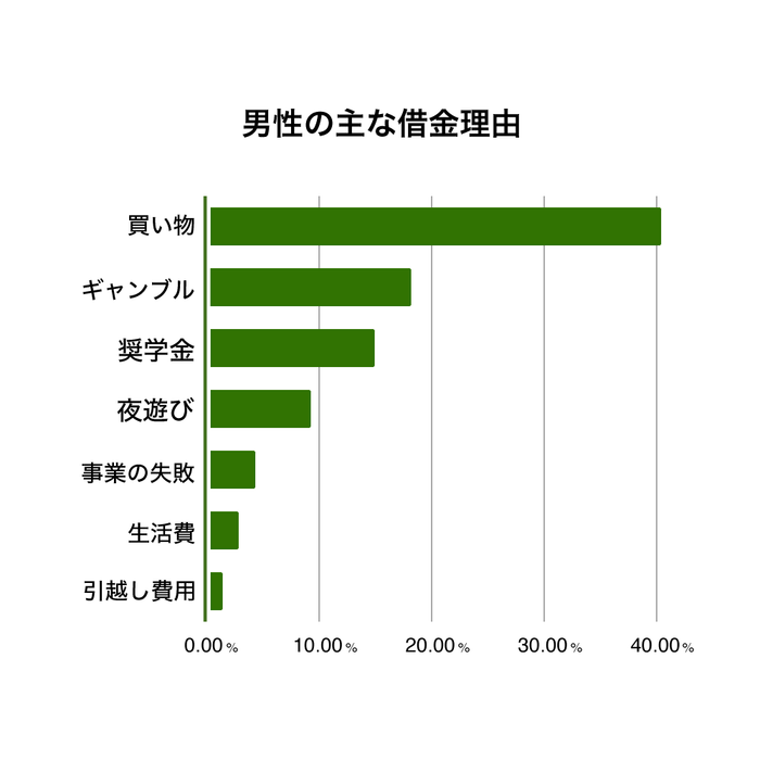 男性の場合は女性と比較して、ギャンブルや夜遊びが借金の原因となっている比率が高い傾向にあります。