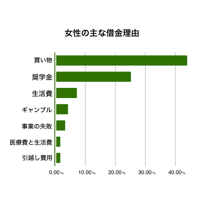 女性の場合は男性と異なり、借金をした理由として生活費がギャンブルよりも上位にランクインしています。