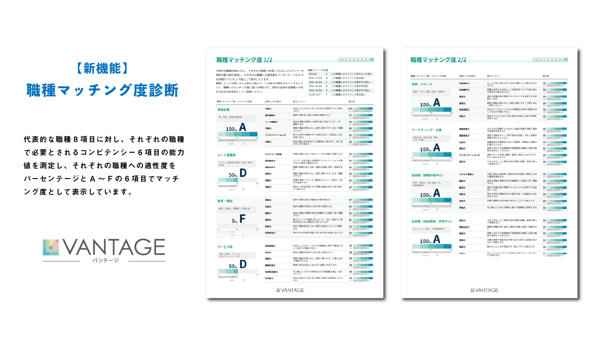 職業能力適性診断「VANTAGE」 〈新機能〉職種マッチング度診断機能リリース