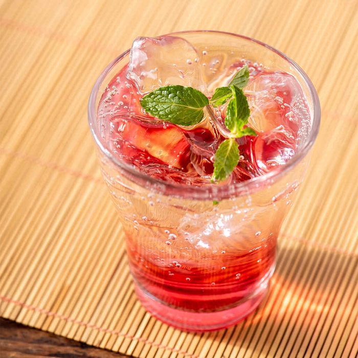 柔らかなおいしさの「飲む酢 梅と赤紫蘇」は、かき氷のシロップとしてもお使いいただけます。細かく砕いた氷に「飲む酢 梅と赤紫蘇」を原液のままかけると、まるでクリスタルのような赤色が美しいかき氷が完成しますよ。これからの季節、うんと暑い日のおやつとしてもご活用ください。