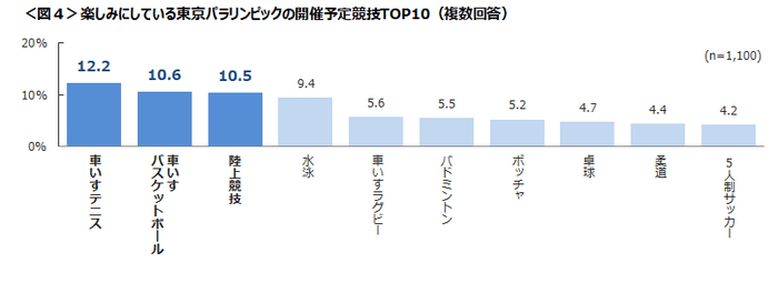 過去のパラリンピックでも金メダルの獲得経験があり、前回の2016年リオデジャネイロ大会でもダブルスで銅メダルを獲得している「車いすテニス」への期待や注目の高さが窺える。<図4>