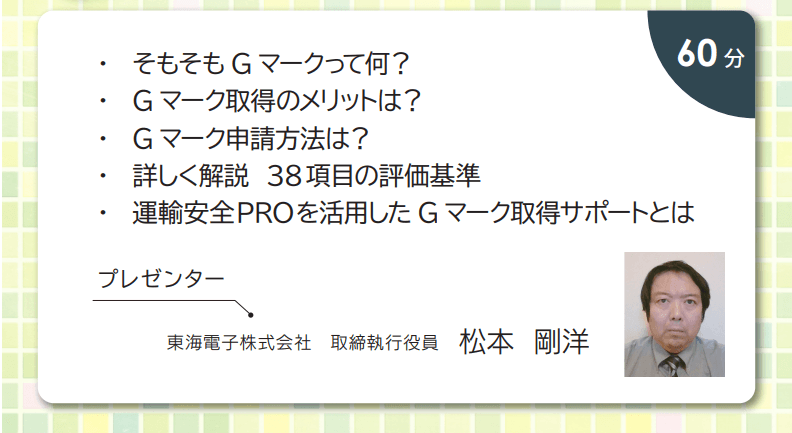 Gマーク取得を目指すトラック事業者様必見!【基礎から学ぶ!】Gマーク取得サポートセミナー 5月10日(火)、5月19日(木)開催のお知らせ