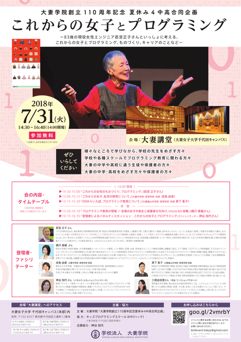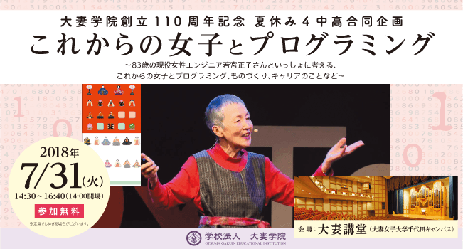 プログラミング教育に関わる方や先生をめざす方に向けた 大妻学院創立110周年記念夏休み4中高合同企画 「これからの女子とプログラミング」7月31日に開催