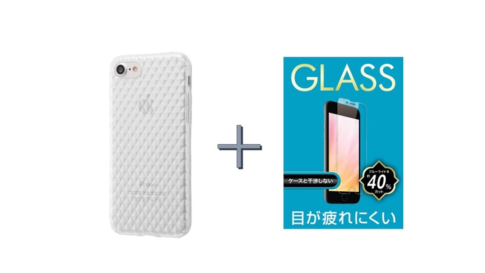ダイヤモンドカット クリアケース/クリア +ブルーライトカットガラスフィルムセット