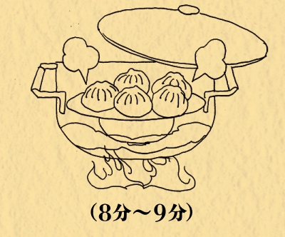 セイロにフタをして加熱し、沸騰させて8~9分蒸らして完成。