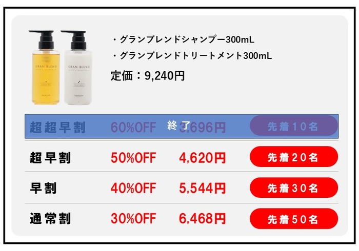 ・超超早割【60%OFF】3,696円 先着10名 ※終了