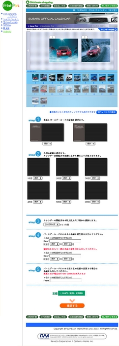 「Print Park」とは、オン・デマンド出版とEC(電子商取引)を組み合わせたオンデマンドグッズ販売サイト。一人一人のニーズに合わせ、お客様自らカレンダーの画像を選び、楽しみながら自分だけのオリジナル商品を作ることが出来ます。今回、スバルのカレンダー用にNostalgic Car/WRC Car/News Carの3ラインナップを御用意しました。