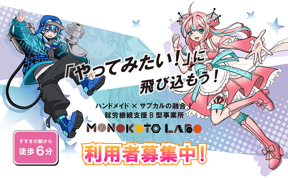 ハンドメイドとサブカルが融合! 札幌・すすきのの就労継続支援B型事業所『モノコトラボ』が 新規利用者様の募集開始