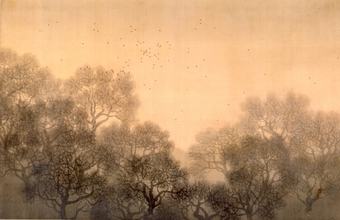 東洋美術において、樹木のモチーフはたいへん重要な意味を担っています。例えば山水人物、動物などを描く絵画では、画面に奥行きを生み出し、臨場感を表します。さらに季節や樹齢に応じて、葉の色や姿かたちを変えることから、人間の一生、生きざまの象徴としても描かれてきました。