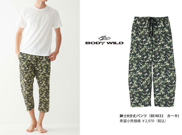グンゼ株式会社(本社:大阪市北区、社長:佐口 敏康)は、メンズブランド「BODY WILD(ボディワイルド)」のイエナカ専用パンツ「ラクチル」からプリントタイプの8分丈パンツを5月中旬に発売しました。