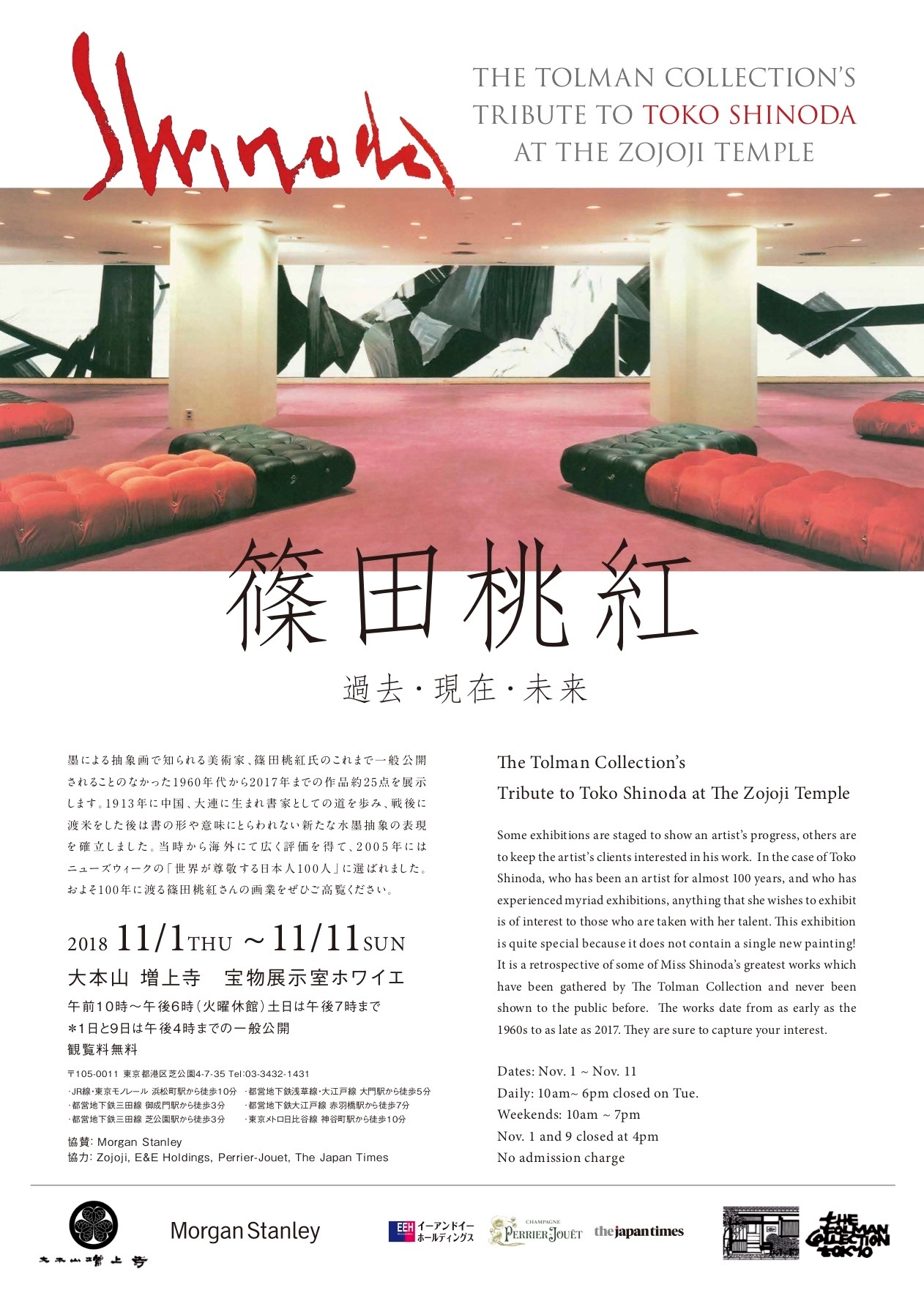 有限会社ザ・トールマン コレクション(本社:東京都港区、代表取締役:ノーマン トールマン)は、東京・増上寺(港区)でのイベント「篠田桃紅展-過去・現在・未来」の開催が、2018年11月1日(木)からと迫っていることをお知らせします。