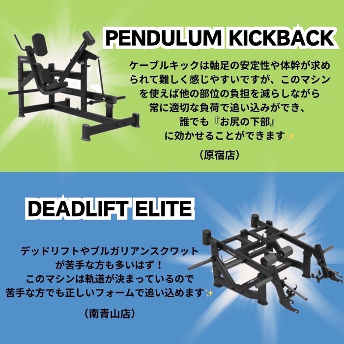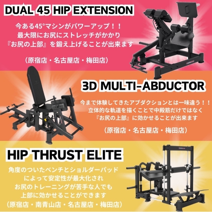 一般的なジムにあるマシンは大きく扱いづらいことも多いですが、今回導入する新マシンは日本人女性にも合うサイズで、ヒップトレーニングが苦手な方も簡単にお尻に“効かせることができる”画期的なマシンです。