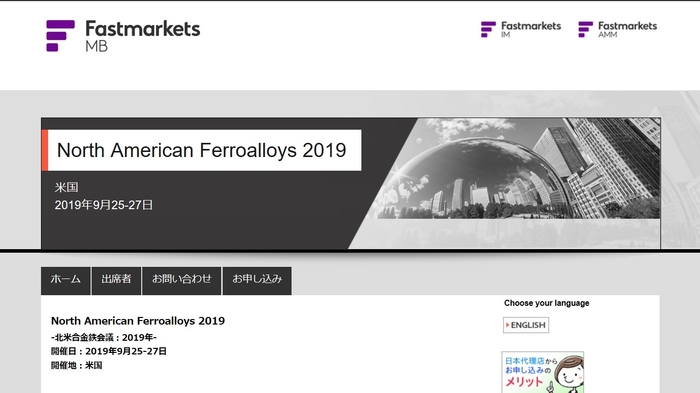 国際会議「North American Ferroalloys 2019-北米合金鉄会議 2019年」(Fastmarkets主催)の参加お申込み受付開始