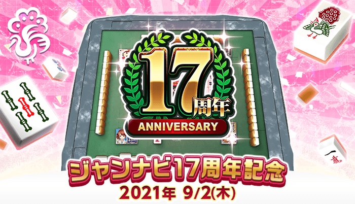 株式会社ウインライトが運営するオンライン麻雀ゲーム「ジャンナビ麻雀オンライン」は、2021年9月2日(木)に17周年となりましたことをお知らせいたします。