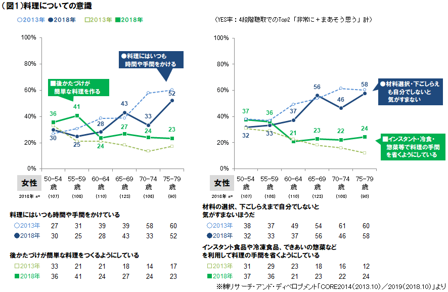 ●シニア女性において「より効率的に調理をしたい」志向は高まる。(図1)