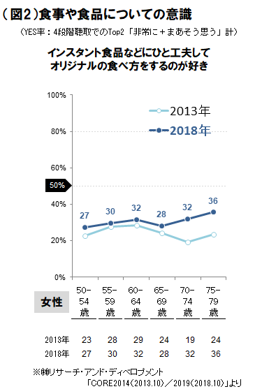 ●「インスタント食品にひと工夫して食べる」のが高齢層に広まる。(図2)