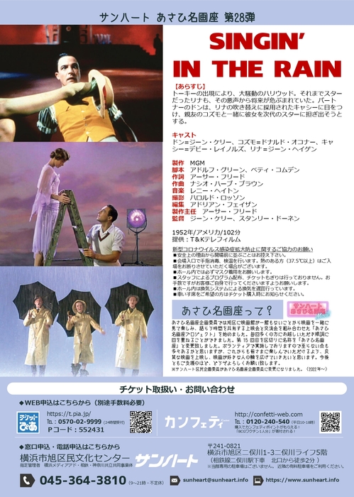 映画館のない横浜市旭区の名作映画上映会 サンハートあさひ名画座第28弾『雨に唄えば』開催決定 カンフェティでチケット発売