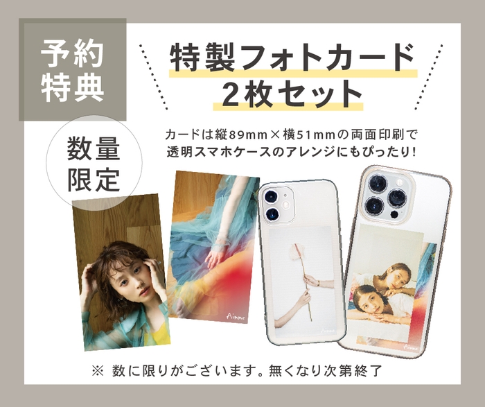 “数量限定※”の予約特典(フォトカードvol.1)をご用意しておりますので、詳細は下記、楽天市場内の商品ページ、もしくは、公式Instagramアカウント(@aimmx_official)をご確認くださいませ。