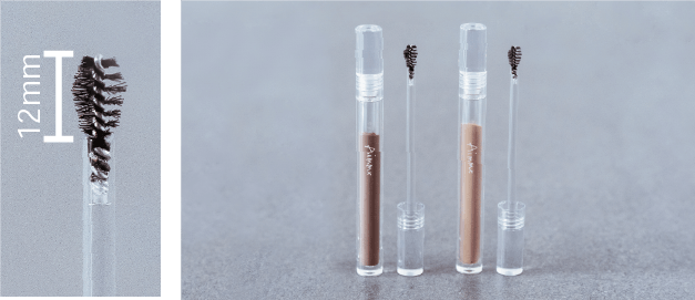 オールクリア容器に独自開発コンパクトブラシ※1を採用し、眉毛の量を問わず調整して使いやすい設計です。
