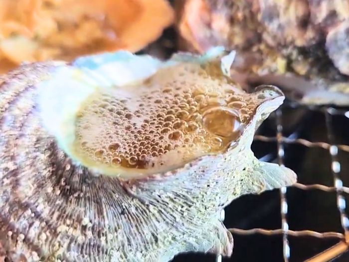 1.特別な海の幸を思う存分に:豊かな海が育んだ牡蠣、帆立、さざえを網焼きで提供。