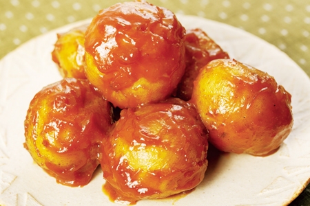 かんぷらとは福島の方言でばれいしょを意味し、味噌かんぷらは小さめの皮付きばれいしょを丸のままこってり甘辛い味噌と絡めた郷土料理です。味噌だれとごま油の風味がどこか懐かしく、食が進む味わいです。しっとりとなめらかな食感で甘味のある北海道産黄色系品種のばれいしょを使用しています。