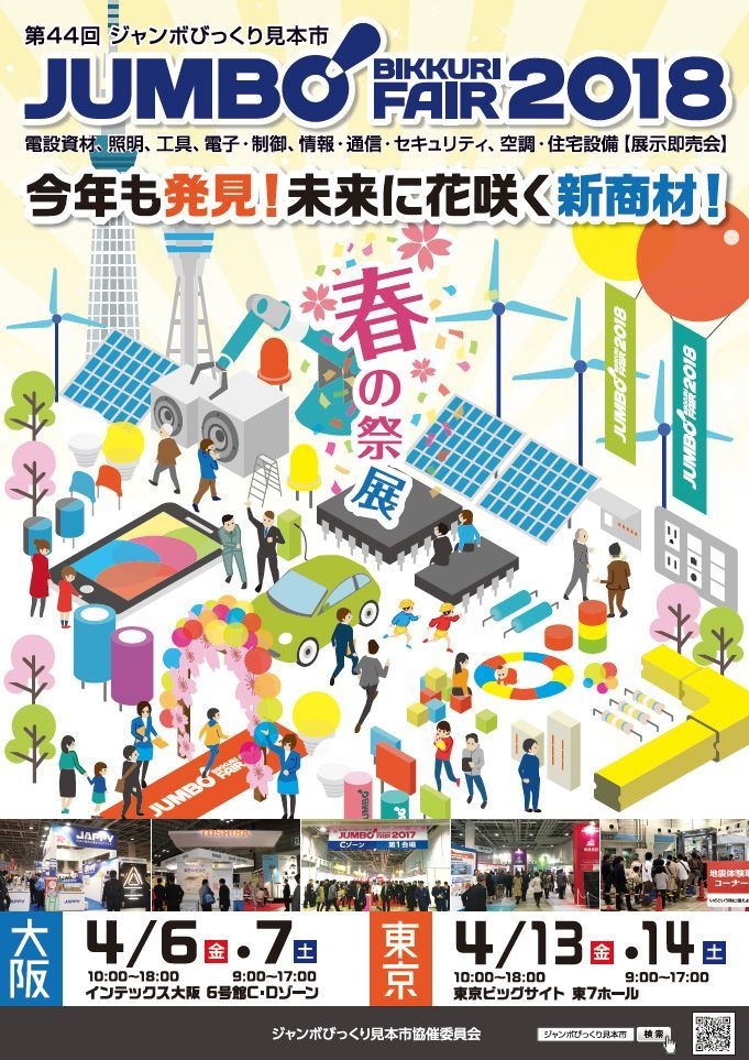 ジャンボびっくり見本市協催委員会は、国内最大級の電設資材見本市「第44回ジャンボびっくり見本市」を大阪(4月6日・7日)と東京(4月13日・14日)にて開催いたします。