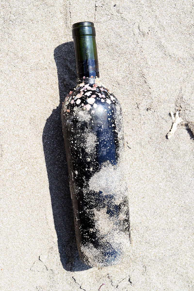 防水処理をしたワインボトルが重なり合うことなく、一本一本が海水に触れるように設置することで、多くの生物が付着します。