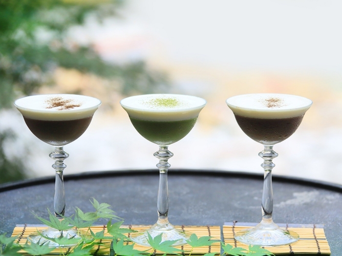バータイムでは、佐賀の茶文化と地酒を融合させた地酒/抹茶カクテルをご提供します。昼と夜の異なる“佐賀風雅”をご体感ください。