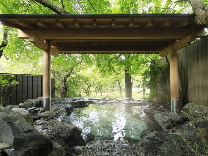 露天風呂では、季節の風景とともに清流の音が心を整え、夜は星空、朝は柔らかな光に包まれながら、贅沢なひとときをお愉しみいただけます。