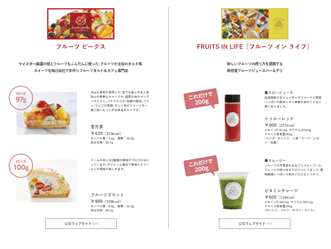 ご高齢の方まで日常の生活に取り入れやすいジュースでは全国に184店舗のジュースバー「果汁工房果琳」等を展開し、さらに熟度管理と鮮度にこだわったフルーツを美味しく食べられるタルトを作りたいという考えから始まった「フルーツピークス」ではフルーツをたっぷり使った目にも鮮やかなタルトやパフェをご提供しています。