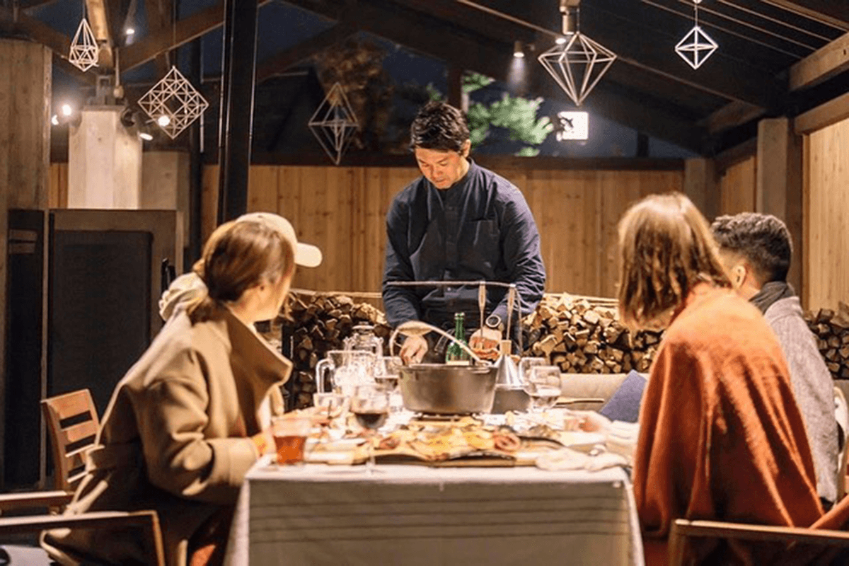 海と森に囲まれた屋根付きBBQ場「森とリルのBBQフィールド」では、おでんや牡蠣食べ放題、薪焼きなどの「冬BBQメニュー」を提供します。