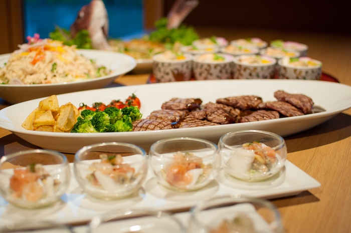 「舞洲キッチン」では、華やかなパーティプラン(飲み放題90分付き)を2タイプご用意し、前菜からデザートまで和洋中のコース料理を楽しんでいただけます。