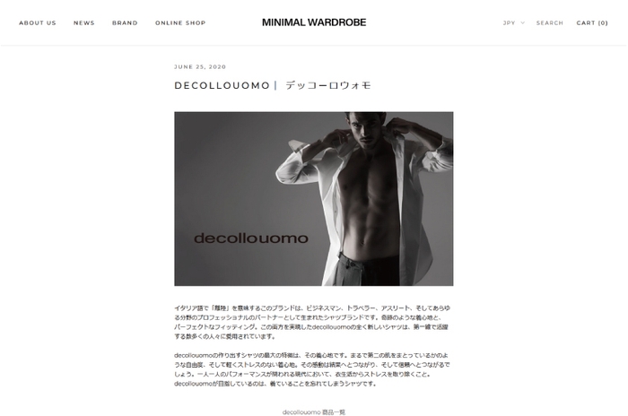 FORZA STYLE 編集長 干場義雅さんの好きな「究極の普通」のものだけを集めたセレクトショップ「MINIMAL WARDLOBE(ミニマルワードローブ)」にて、decollouomo(デッコーロウォモ)の取り扱いが始まりました。