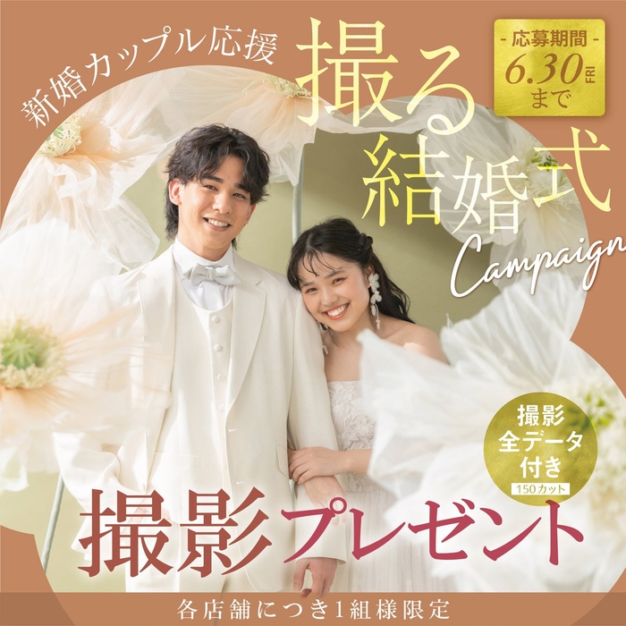 「コロナが落ち着いてようやく入籍した」「最近やっとウェディングフォトや結婚式について検討し始めた」といった方へ向けて、『撮る結婚式』をプレゼントするキャンペーンを実施いたします。